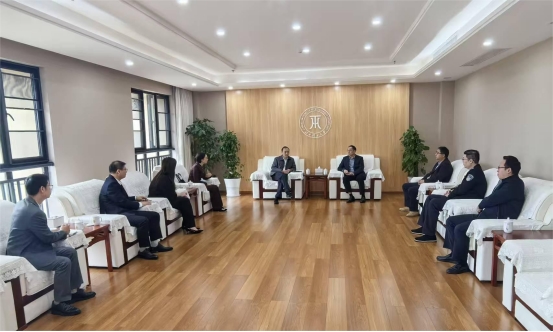 10月23日上午,市旅投集团总经理吴昊,党委副书记黄冬梅一行来校洽谈交流,校党委书记刘祖文主持接待会。旅投集团通报了与我校合作开办三江校区国际学术会议中心(橙芷酒店)试运营以来,为学校学术交流、后勤服务提供接待保障情况,并提出深度合作的请求。刘祖文对旅投集团为我校后勤服务保障付出的努力给与充分肯定和感谢,要求职能部门提高站位、主动担当,为学术交流中心运营提供全方位保障,学校各单位要充分发挥学术交流中心的窗口作用,积极利用培训、会议、住宿加大对学校的宣传推介,实现校园服务与人才培养、学校特色宣传的有机融合。