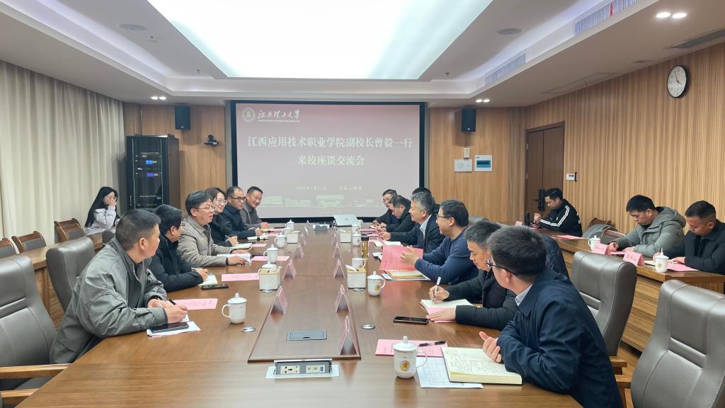 1月21日江西应用技术职业学院副校长曾毅一行来访,我校党委常委、副校长董冰岩会见了到访来宾,双方进行了友好交流与座谈。招标与采购中心副主任黄小毛、党委武装部副部长、保卫处副处长钟杨俊、党委学生工作部副部长、学生工作处副处长刘黎明、基建与后勤处副处长黄阁校园服务与校产中心副主任罗罡参会。